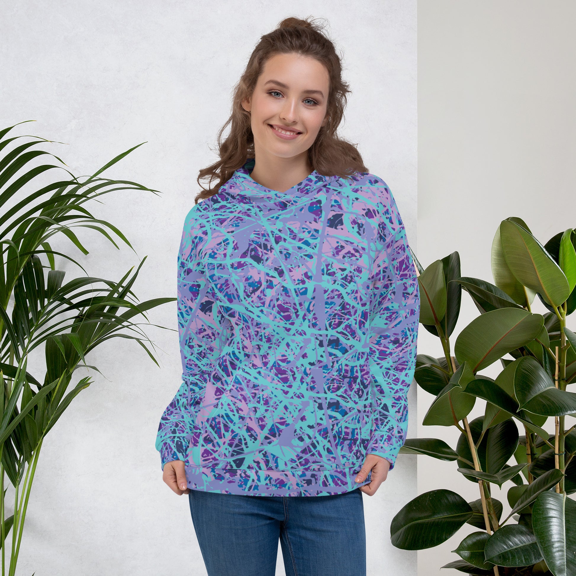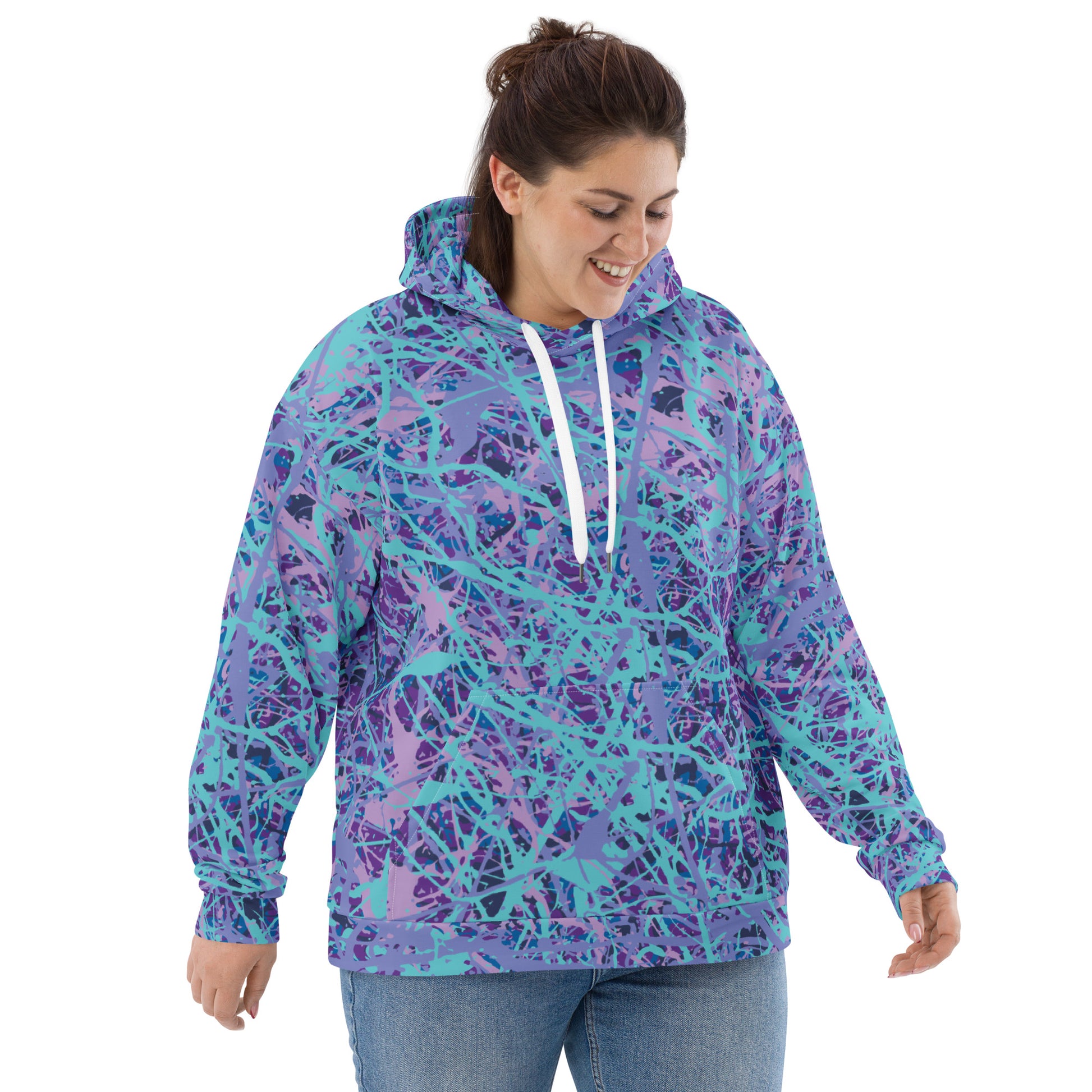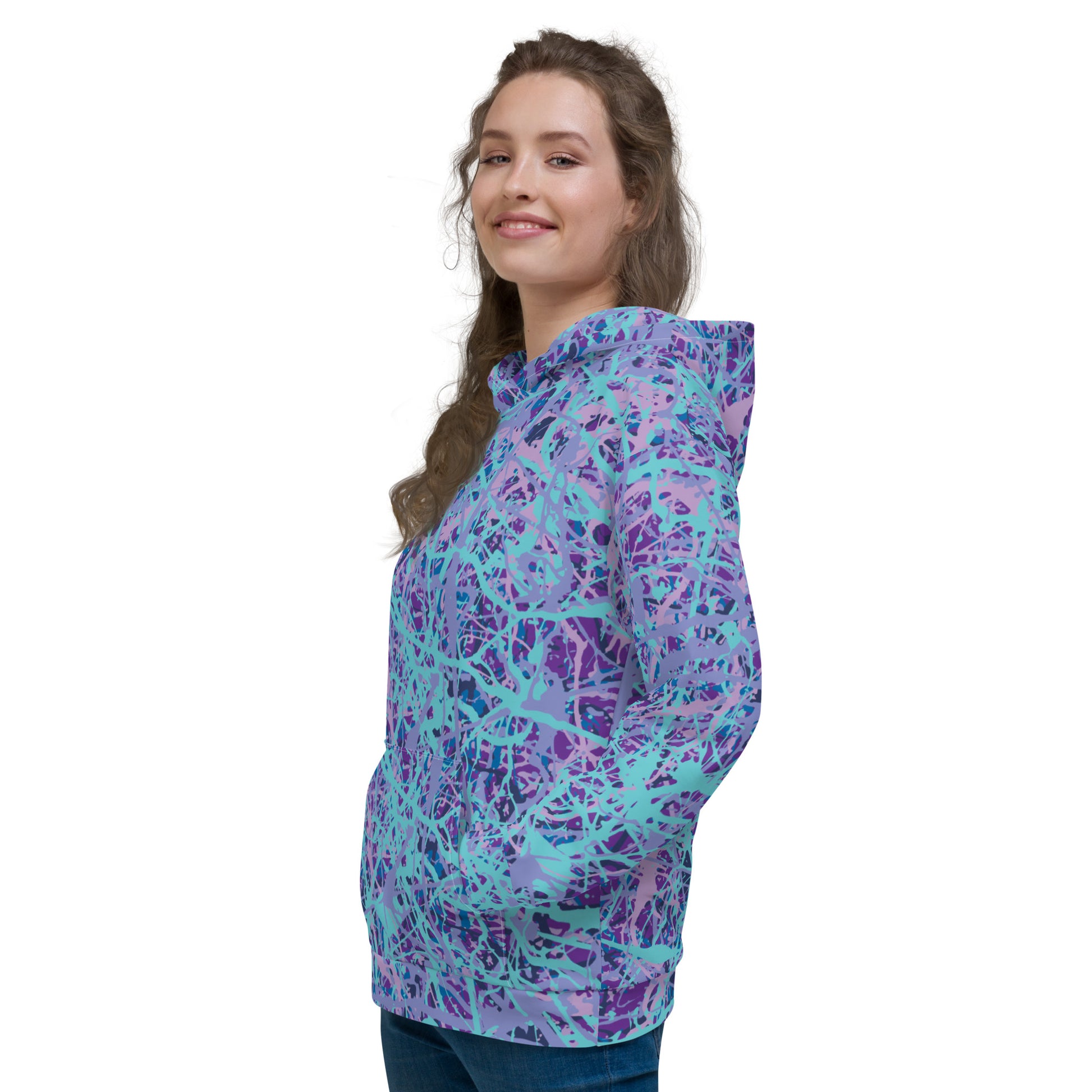This comfy unisex hoodie has a soft outside with a vibrant print and an even softer brushed fleece inside. The hoodie has a relaxed fit, and it’s perfect for wrapping yourself into on a chilly evening.