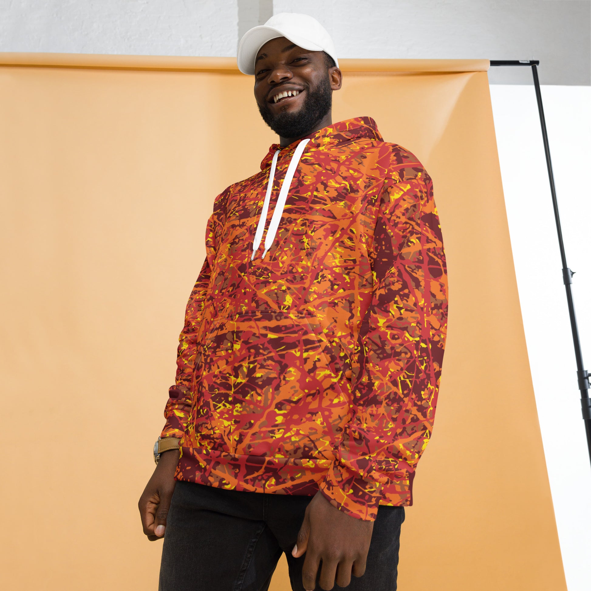 This comfy unisex hoodie has a soft outside with a vibrant print and an even softer brushed fleece inside. The hoodie has a relaxed fit, and it’s perfect for wrapping yourself into on a chilly evening.