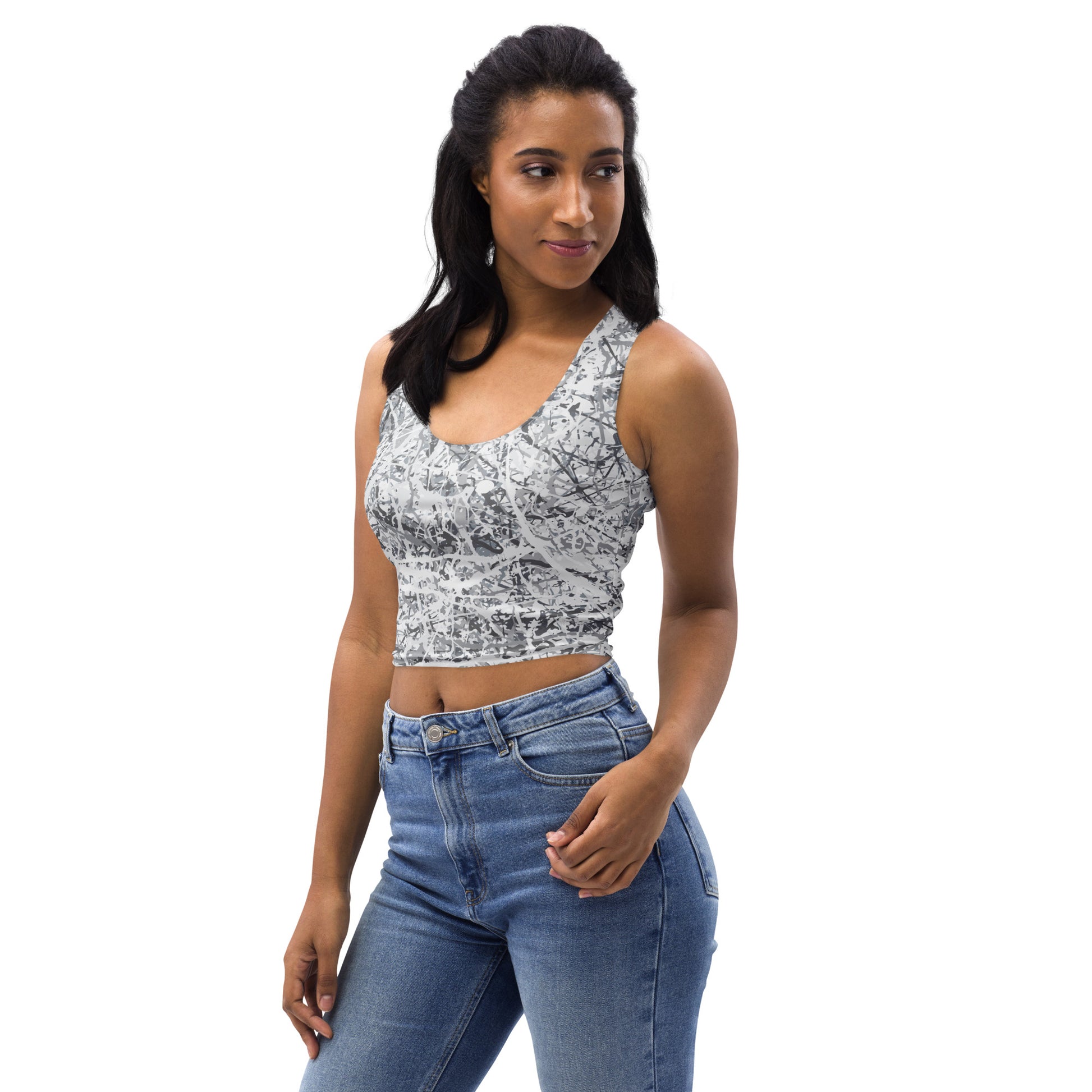 Look fabulous in an all-over printed, body-hugging crop top.