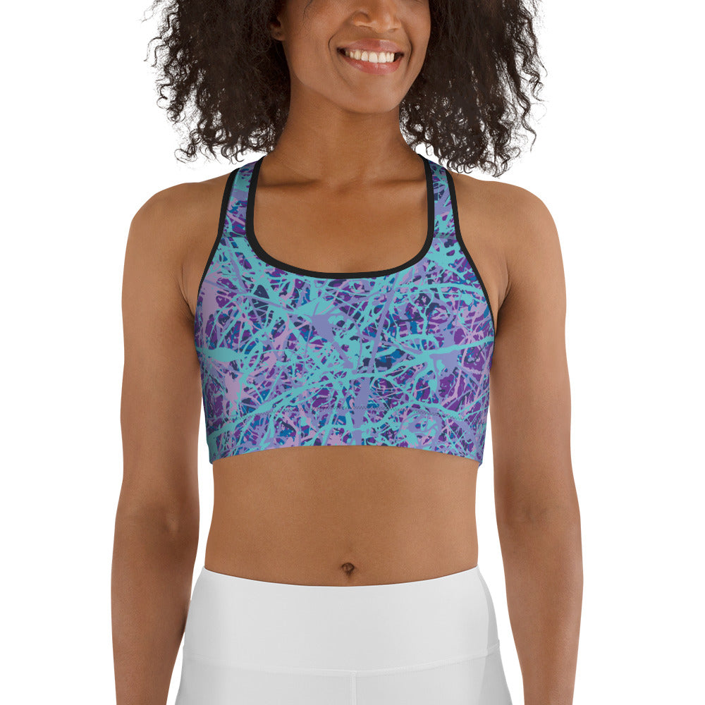 This gorgeous sports bra is made from moisture-wicking material that stays dry during low and medium intensity workouts. The bra has support material in the shoulder straps, double layer front, and a wide elastic band to ensure constant support.