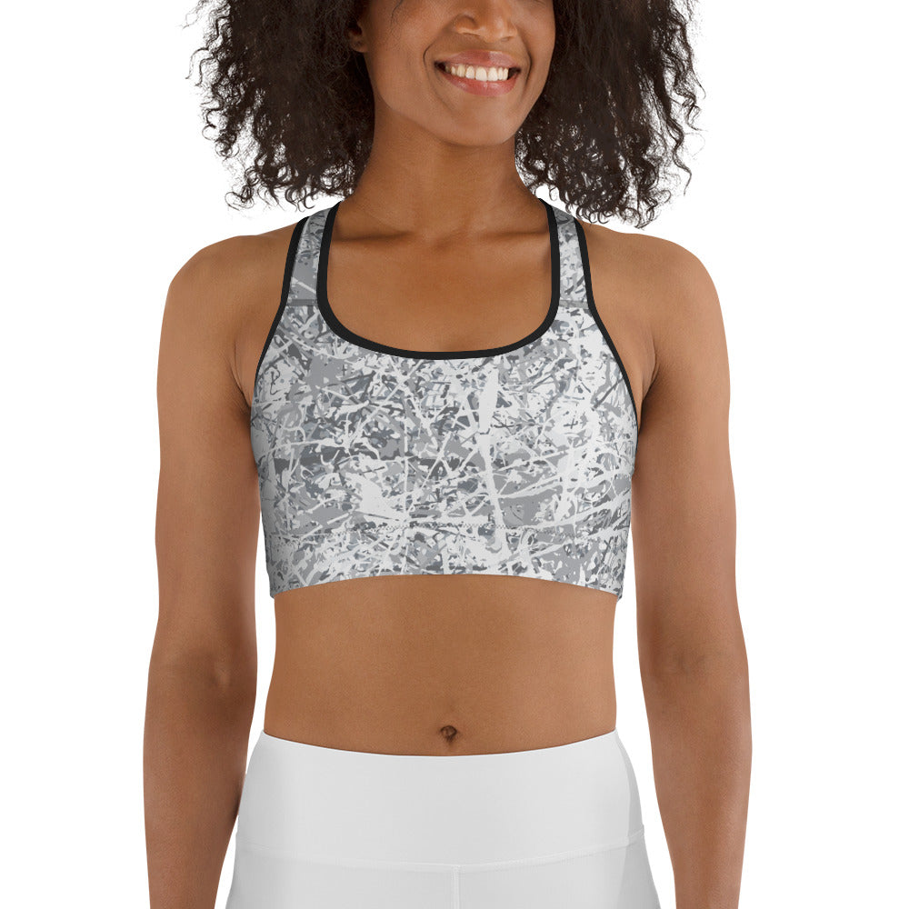 This gorgeous sports bra is made from moisture-wicking material that stays dry during low and medium intensity workouts. The bra has support material in the shoulder straps, double layer front, and a wide elastic band to ensure constant support.